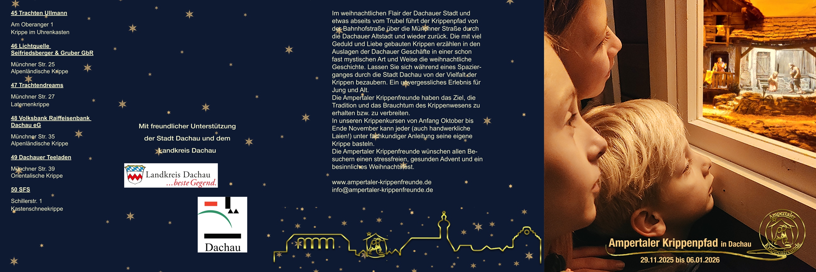 Die Ampertaler Krippenfreunde laden herzlich dazu ein, den Dachauer Krippenpfad zu besuchen und die ausgestellten Krippen zu bestaunen.